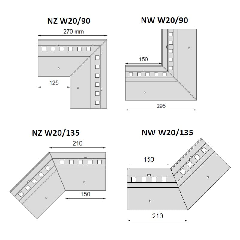Narożnik do profilu okapowego Renoplast W20 (posadzka podniesiona / wentylowana)